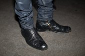 шляпа H&M, немного грязи на белой футболки странной фирмы, штаны Alexander Wang, кожаные сапоги неизвестного итальянского дизайнера