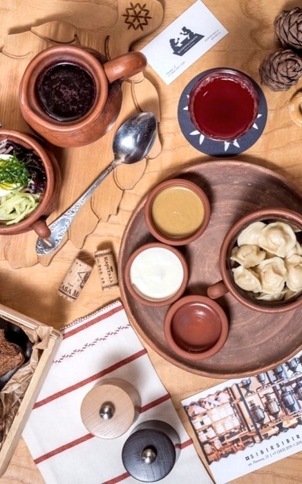 Еще одно исчерпывающее высказывание по главным местным гастробрендам — в «#СибирьСибирь». Чтобы обучиться сибирской азбуке вкусов берите пирожки с заячьими потрошками, хреновуху, косулю с печёной тыквой, белые грузди, строганину из нельмы, десерт из клюквы с кедровыми орехами и, конечно, пельмени — из четырех видов мяса или с щукой: их по традиции едят одновременно с горчицей и уксусом.