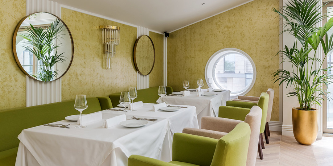 Ресторан на пятом этаже при одноименном отеле в своем активе имеет авторское меню, винную карту с упором на Старый Свет — особенно игристые и Шампань — и террасу, куда по винтовой лестнице поднимаются за видом на петербургские крыши.