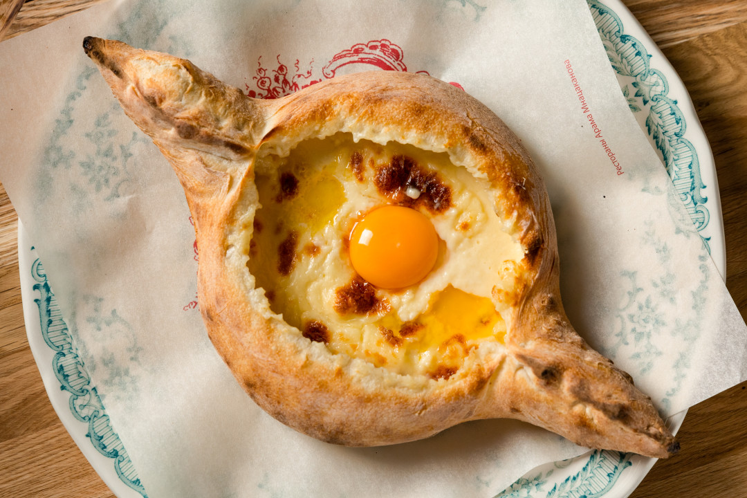 В свое первое грузинское заведение Арам Мнацаканов привез молодую тбилисскую звезду Гиа Хучуа. Хотя в сердце ресторана полыхает огонь аутентичной печи тоне, манеры у места вполне современные: с потрошками кучмачи, скажем, готовят равиоли, а хинкали — делают крохами в стиле тортеллини.