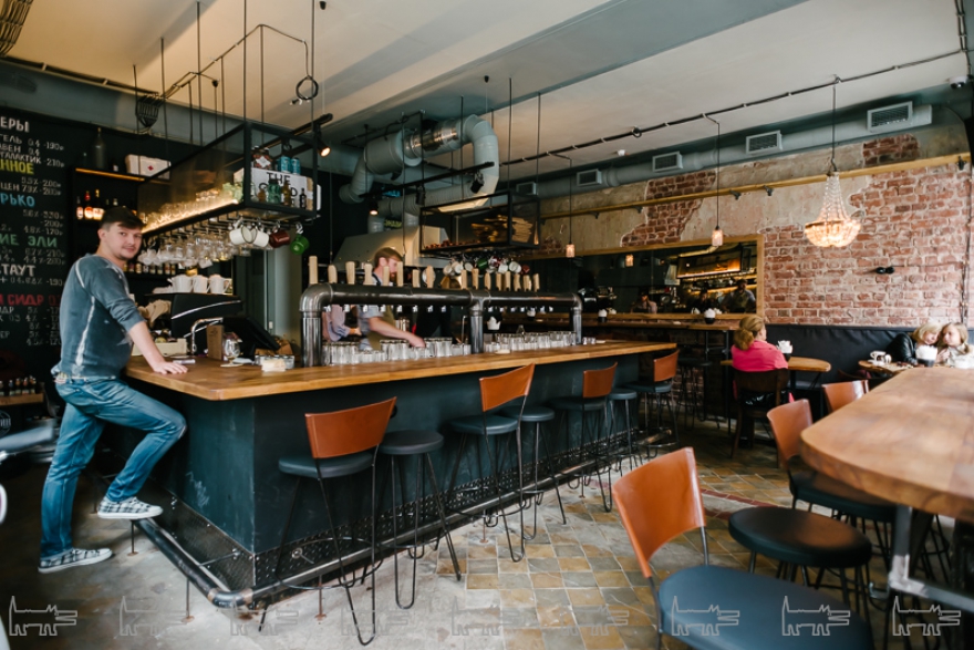 Жанр хорошего бара «за углом», в котором соседи собираются на пинту пива каждый день — знакомый жанр для Петербурга с 2010-го, когда открылся Terminal на Рубинштейна: район Малого проспекта Петроградской стороны с опозданием, но тоже обзавелся своим. В таких питейных всегда есть что-то от духа пабов из фильмов Гая Ричи, где завсегдатаи дружно поворачивают головы, когда на пороге оказывается чужак. Здесь, конечно, никто не оглядывается, но присутствие определенного комьюнити немного чувствуется — скажем, когда по периметру квадратной барной стойки (за ней разливают пиво, принимают и собирают заказы по кухне) рассаживается шумная компания знакомых между собой людей, а тебе нужно из-за их спин привлечь внимание персонала к себе.