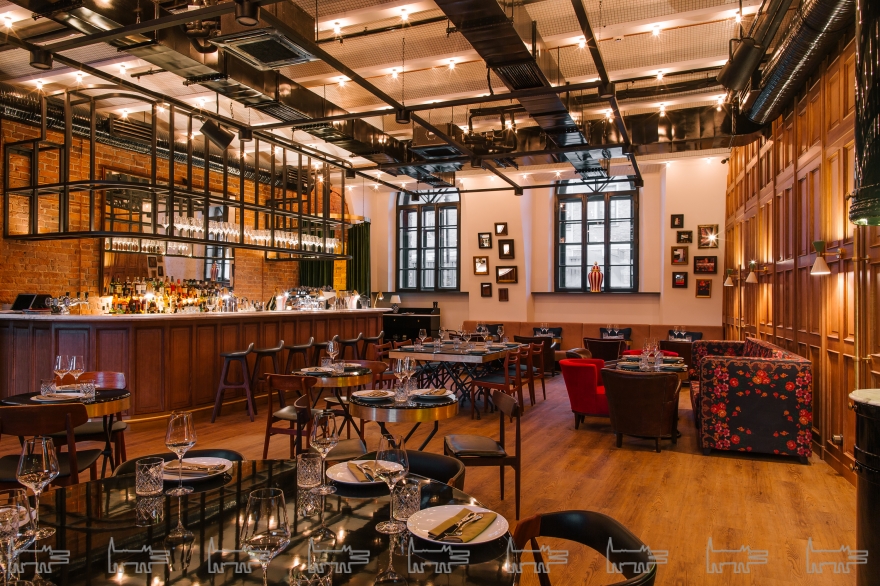 В названии ресторана-клуба Kuznya House не случайно есть слово «дом» — команда идеологов во главе с креативным директором Роксаной Шатуновской рассказывают, что хотели создать место, где захочется проводить время часами. Отправной точкой для интерьера послужили фотографии дореволюционных петербургских квартир — так появились обшитая деревом стенная панель, лакированный буфет, повешенные под наклоном зеркала, бархатные портьеры у дверей, диваны с павлопосадскими принтами. Труженики ресторанного пиара любят в пресс-релизах упоминать теорию «третьего места» — пространства, которое не дом («первое место») или работа («второе место»), а другая территория, где комфортно и душевно. Kuznya House — как раз могла бы служить иллюстрацией: на часах, когда выходить оттуда, оказалось ровно на три часа больше, чем запланировано. А куда торопиться, если тут рядом историк Лев Яковлевич Лурье читает книжку, а промоутер и диджей Михаил Колесников обсуждает последние городские сплетни — так и не заметишь, как наступит вечер, и ресторан трансформируется в клуб, где танцуют до утра.