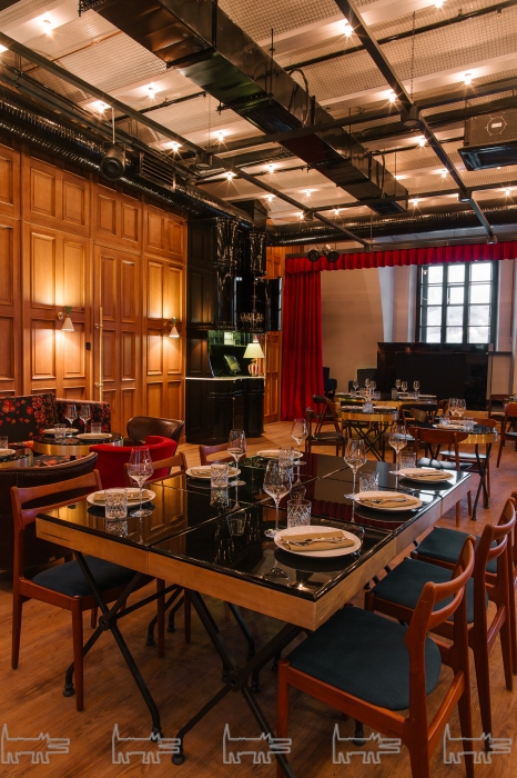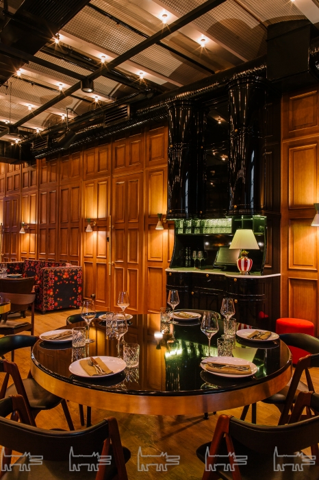 - Сервировка — особое тактильное удовольствие, потому как вся столовая и чайная посуда — Императорского фарфорового завода, приборы — Павловского завода художественных металлоизделий, бокалы и стаканы — из Гусь-Хрустального. Милых петербургскому сердцу брендов здесь много: например, кресла были куплены в отеле «Астория», который решил провести редизайн своего лобби, отреставрированы и перетянуты.