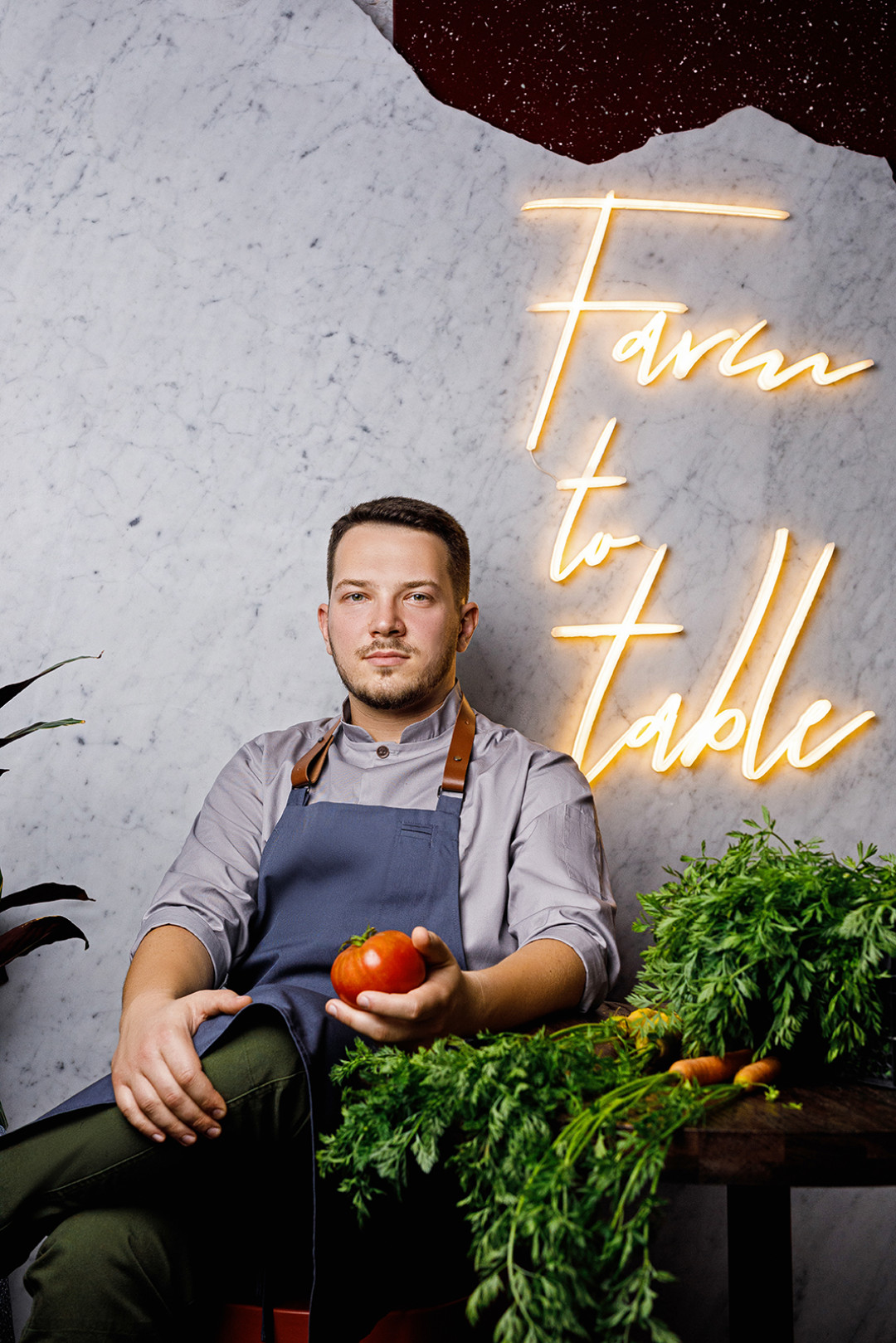 Заявленная концепция ресторана – кухня малых хозяйств – предполагает, что основная ставка при разработке меню сделана на фермерские продукты. «Это оказалось очень тяжело! Я думал, что иллюзий по поводу фермерства у меня нет, но, когда столкнулся с реальностью, понял, что в моей голове была картинка из сказки», – признается Абрезов, рассказывая о том, как в течение полугода организовывал регулярные поставки продуктов от фермеров.