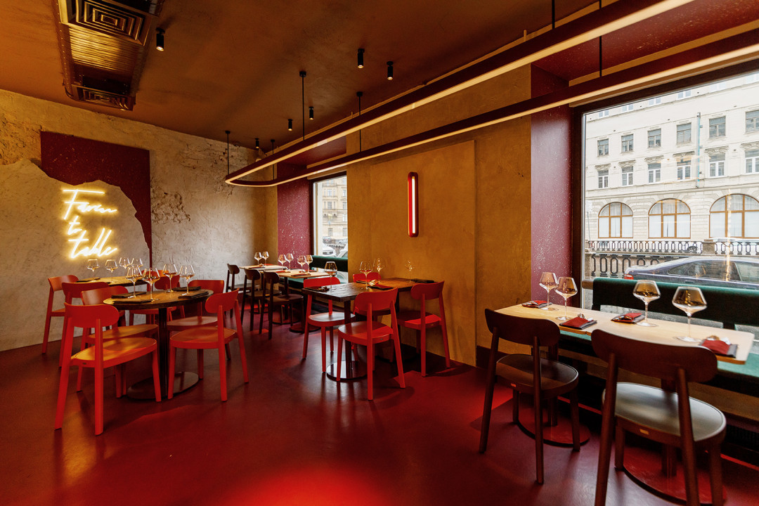 Свой винный бар создатели пиццерии «22 сантиметра» и мясного ресторана Red. Steak & Wine Эльдар Кабиров и Андрей Петухов сразу объявили пространством эксперимента, и теперь следуют обещанию, регулярно устраивая привозы заслуженных шефов из Москвы и регионов. Шеф-повар заведения Константин Опескин тоже не отстает: предлагает севиче из томатов, с физалисом и виноградом, тартар из оленя с маринованным одуванчиком и супер-хит – брауни с авокадо и трюфелем.