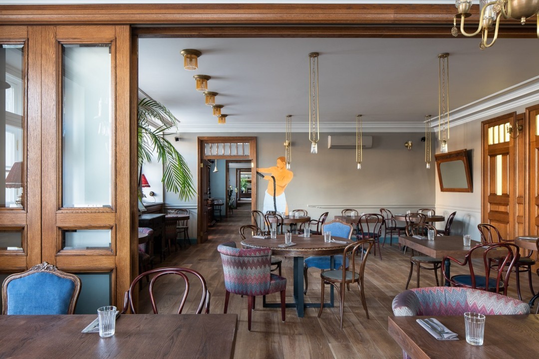Команда «Банщиков» в здании Кваренги снова дала русскую кухню, но на этот раз в куда более авторском изводе. Меню ресторана бренд-шеф Станислав Левохо выстроил на трех смыслообразующих элементах: локальном продукте, собственном производстве (хлеб, пельмени, вареники, колбасы и рыба холодного копчения – все исключительно самодельное), и, главное, каверах на мировые гастрономические хиты в русском стиле. Голубцы с крабом, «суши» из картофеля и сельди, трюфели по-киевски с грибным пюре и каша-карбонара заслуживают внимания не только туристов.