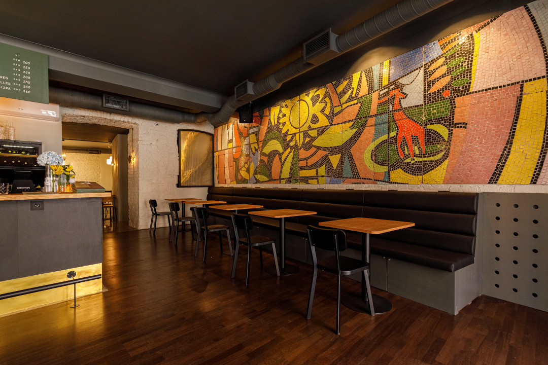 Ресторан, кофейня и бар в от команды московского Nude Coffee & Wine – один из самых стильных новых проектов на Петроградской стороне. За кухню заведения отвечает молодой модернист Артем Чудненко: утром подает образцовые омлеты, панкейки и французские тосты, а по вечерам экспериментирует с необычными сочетаниями, например, соединяя утку с гарниром из тонких как бумага слайсов свеклы и черешней.