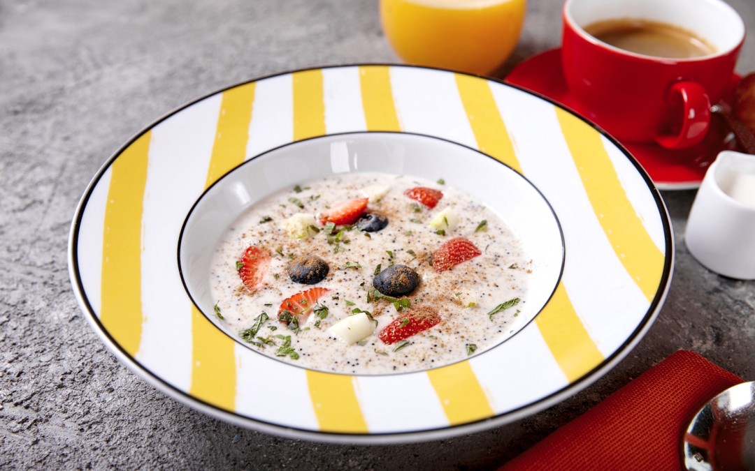 Звездный шеф-повар Александр Белькович, телеведущий, автор книг и хэштега #жараогонь одним из первых в городе начал подавать на завтрак витграсс – натуральный сок из ростков пророщенной пшеницы – и готовить кашу на кокосовом молоке – рисовую, со слайсами банана и соусом из манго. Но больше всего мы любим ту, что варят из амарантовой крупы, богатой всевозможными белками, магнием и фосфором, Белькович подает ее с медом и сезонными фруктами.