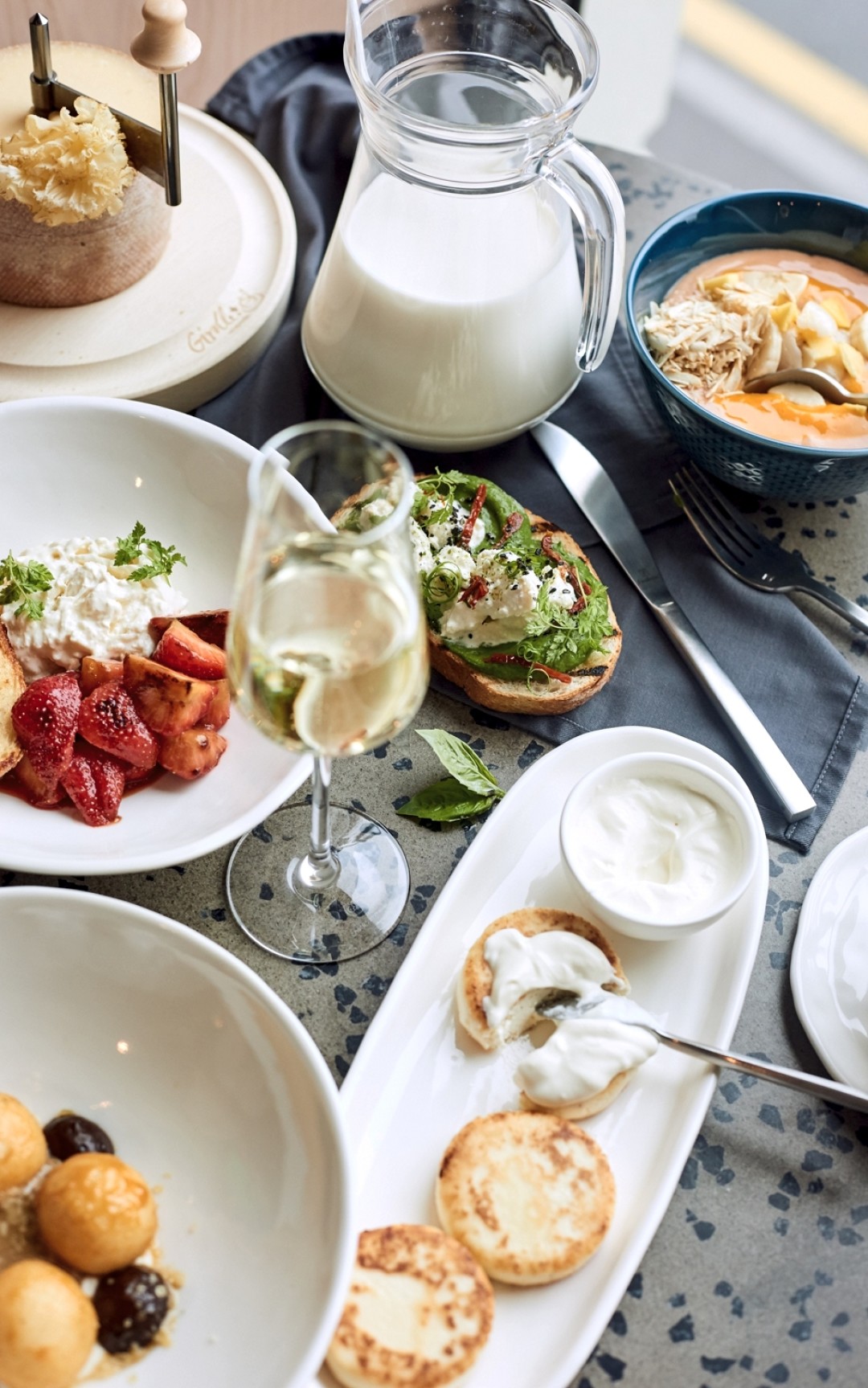 В семейном ресторане в ансамбле исторической молочной фермы на Тихорецком проспекте выпекают овсяные печенья без глютена и подают к нему теплое молоко. На завтрак собирают клаб-сэндвичи с копченым лососем и курицей с соусом Цезарь, жарят яичницы, скрамблы и омлеты.