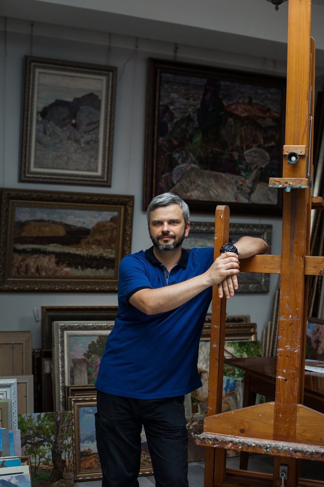 Об Азовском море. Мы ездили на мыс Казантип, там дедушка много работал, мы вместе рыбачили. У художника весьма суетная профессия — важно, чтобы кто-то находился рядом и помогал. Для этого был я. А вообще, он привил мне любознательность и разновекторность в развитии. Рыбная ловля, сбор грибов, отдых в кругу семьи стали нашими традициями благодаря деду. Он очень любил всех и собирал, хотел, чтобы семья была большая и крепкая. А сам кем только не работал: и сторожем, и завхозом в картинной галерее, и рыбаком. Так и я вел в семье самые разные дела, например, был прорабом — больше десятка объектов сдал, занимался строительством пансионата. Живопись не всегда может прокормить. В качестве профессии это достаточно капризное занятие. Это ведь не продукт первой необходимости, она уязвима и к конъюнктуре рынка, и к политической обстановке, всегда надо чем-то себя подстраховывать.