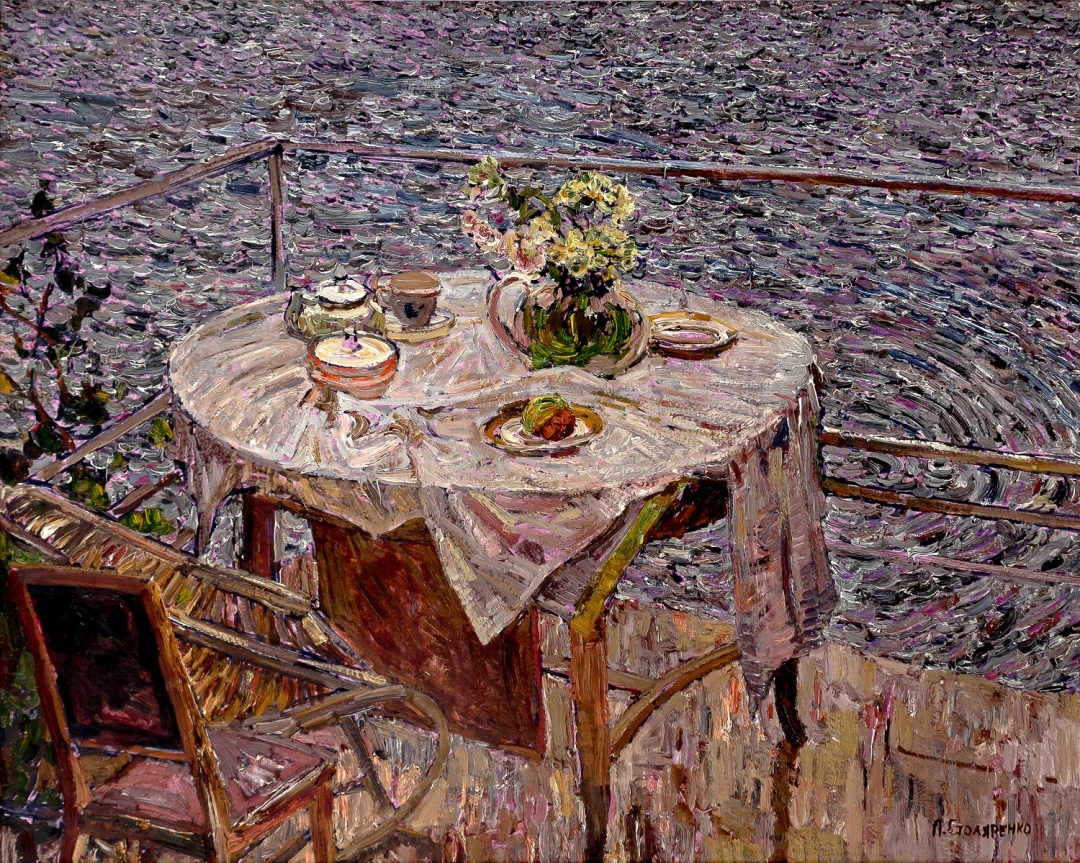 Петр Столяренко—разноплановый художник. Коллекционеры охотились как за его салонной живописью —а это натюрморты с букетами сирени на сервированных фарфором столах и цветы на верандах с видом на море («Лето», 1974; «Глициния», 1997), так и за эпическими пейзажами с вершинами Крыма («Зима в горах», 1963; «Вершина Демерджи», 1970) и жанровыми полотнами («Старый инжир, женщина и вечное», 1970). Бесценны его картины, изображающие море — изменчивое, разнофактурное, пастозное или с тончайшими тональными переходами.