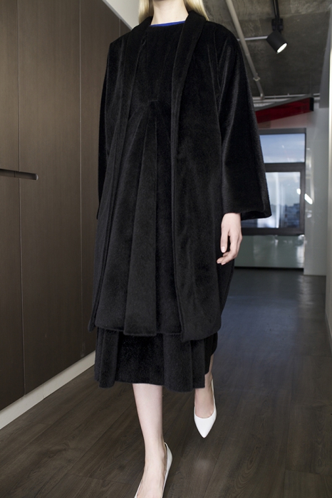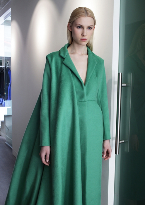 |  | Бабушка Ольги Шурыгиной разрабатывала узоры для шелков на экспериментальном производстве в Фергане, и можно сказать, любовь к живописи и дизайну передалась по наследству. Осенняя коллекция — оммаж названию Cap America: драпировки пальто и платьев вдохновлены складками на тоге статуи Свободы. |