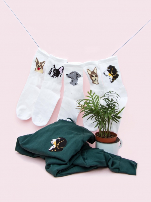 Еще одна марка условно мужской одежды (если бы не розовый свитшот с вышитой мордой собаки по кличке Аврора, можно было бы утверждать точно) из Петербурга. Олег Акбаров, Миша Рыко и Саша Войцеховский начинали с пятипанельных кепок и рюкзаков, а теперь в унисекс-коллекции есть и футболки, и носки.