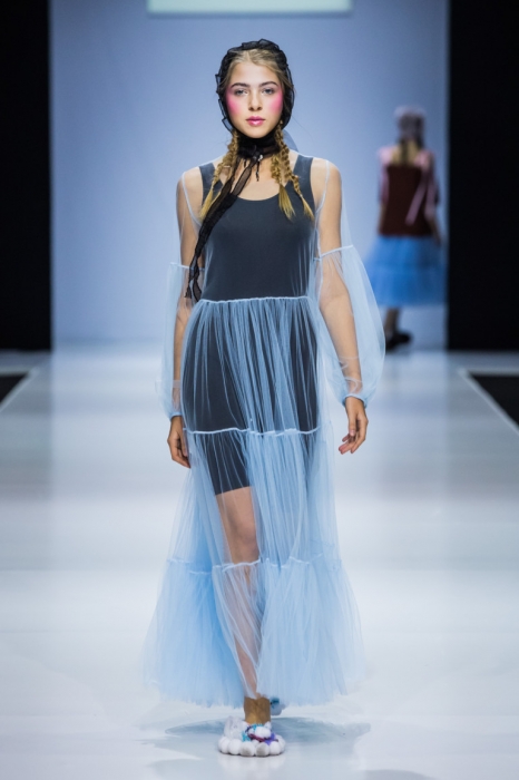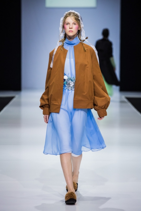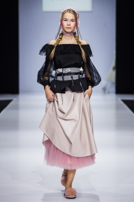Очевидная проблема показов на российских неделях моды — это стайлинг. Наши дизайнеры любят строить на головах моделей дома и отрываться на макияже. Но в случае с So Number One стайлинг только дополнял одежду: сами посмотрите на эти светящиеся лица моделей, косички, прозрачные чепчики и мохнатые тапки.