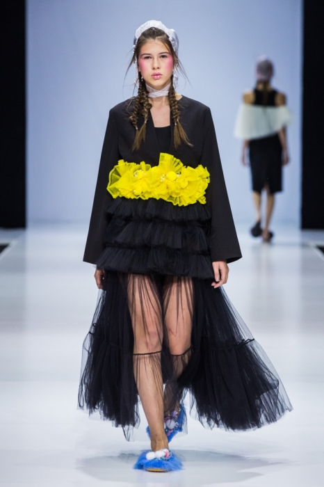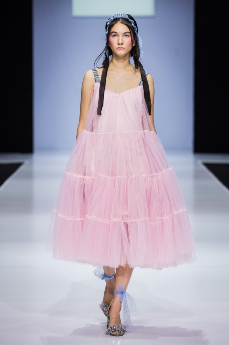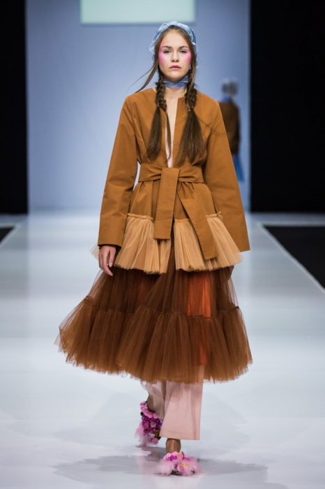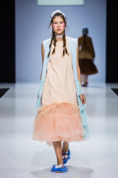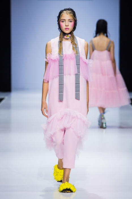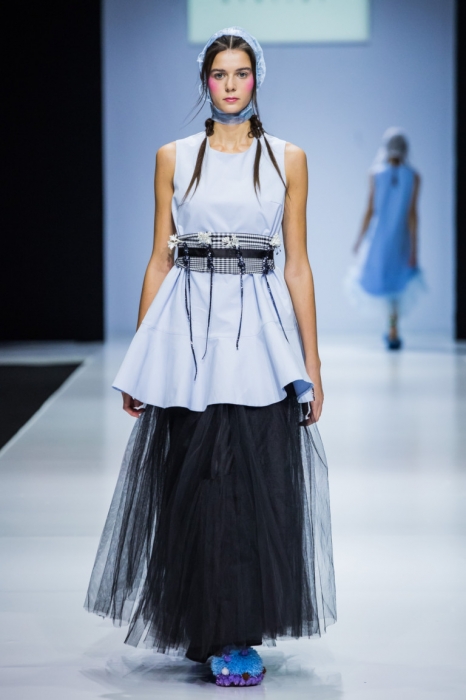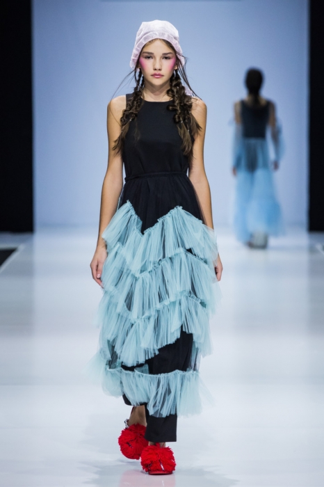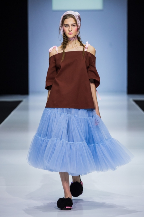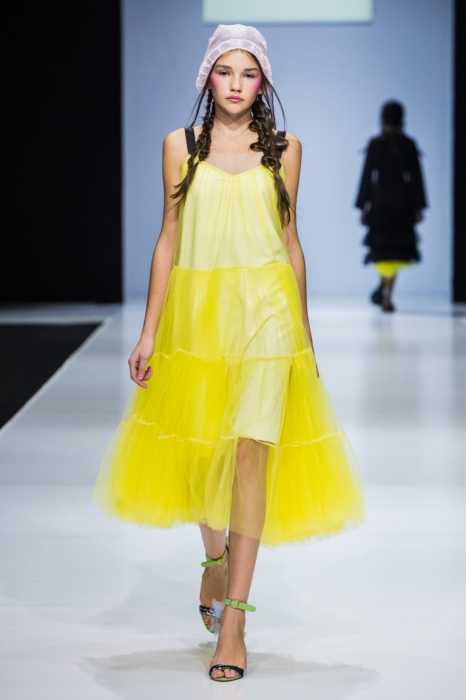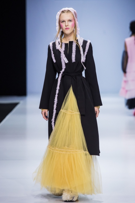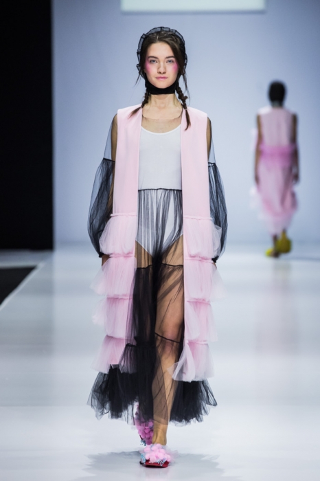 So Number One — еще один петербургский бренд, успешно представивший свою новую коллекцию на неделе моды в Москве. Марка показала свои привычные вещи — фатиновые юбки-пачки, прозрачные накидки и тренчкоты — но в новом обличье: к цветовой палитре добавились канареечно-желтый, голубой и нежно-бирюзовый, и они заиграли по-новому в компании с коричневыми куртками, черными топами или платьями в клетку. В итоге получилась коллекция, которая органично вписывается в мировой контекст моды, но не выходит из уже узнаваемой стилистики бренда.