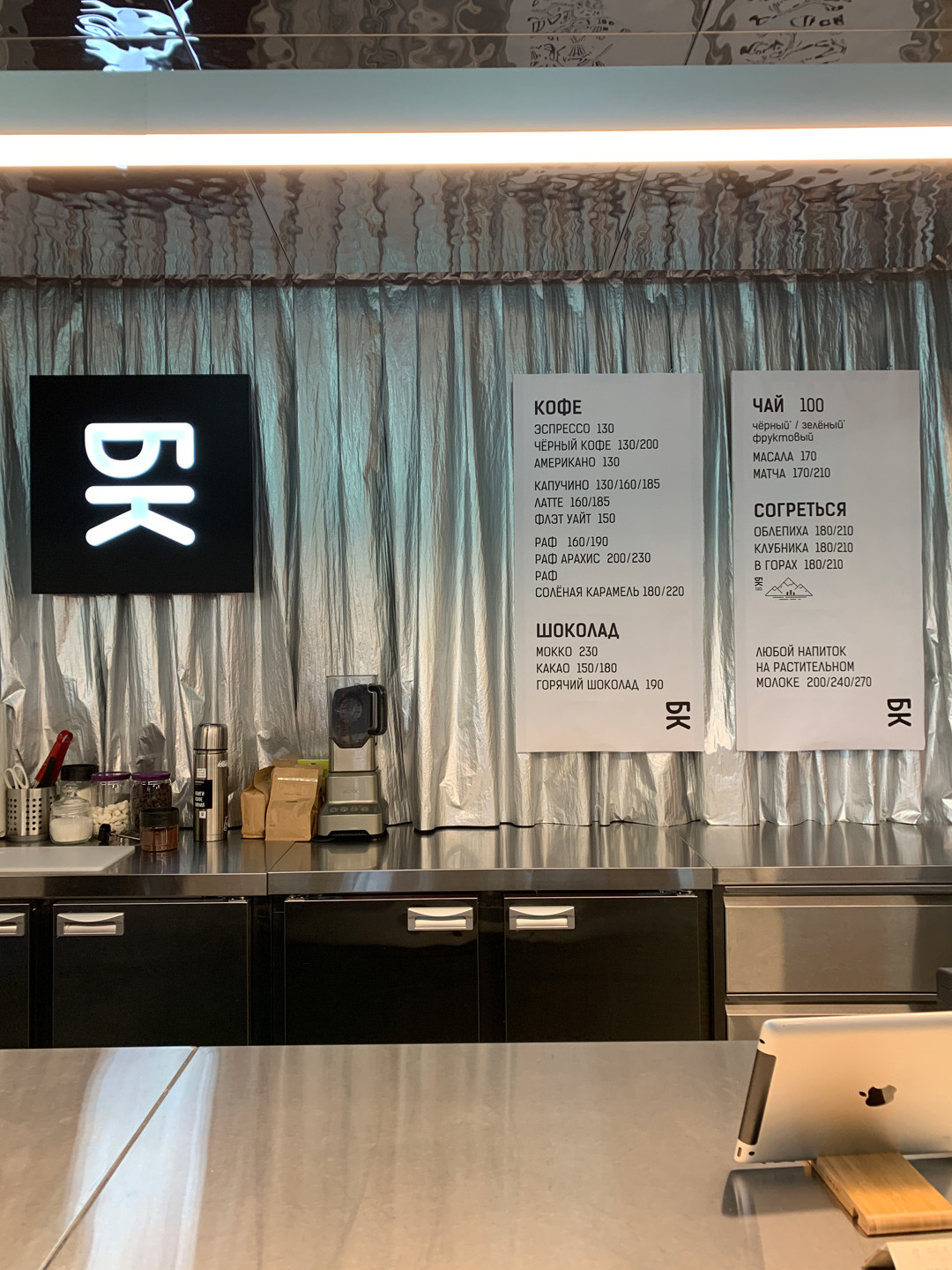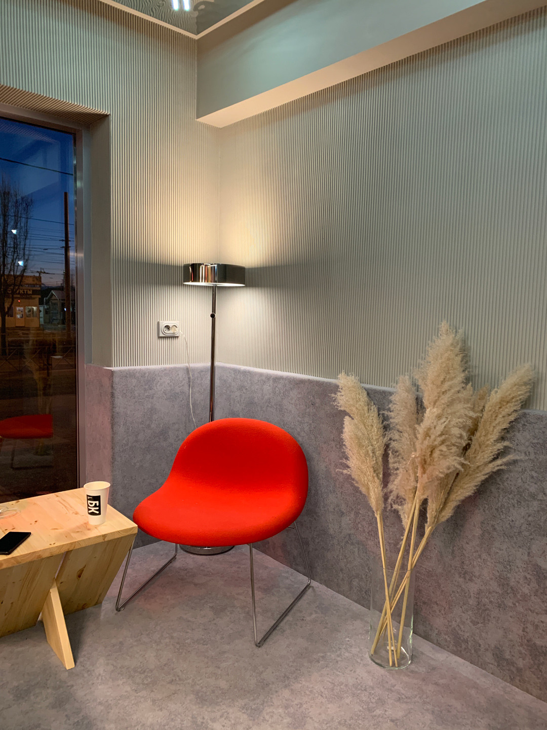 Все наши кофейни отличаются друг от друга — мы постоянно экспериментируем и пробуем новое, но вы сразу почувствуете наш стиль и атмосферу. Новый проект получился немного футуристичным, по отзывам гостей, вызывает ассоциации с «Космической одиссеей 2001» Стэнли Кубрика (мы, кстати, любим и рекомендуем этот фильм). Нам удалось превратить небольшое помещение в просторное и открытое. Мы исповедуем честность, а любая система лояльности стремится привязать человека. Нам это не близко. Мы не повышаем цены, чтобы затем сделать скидку, но мы вычитаем стоимость одноразового стакана, если гость пришел со своей кружкой. Все логично.
