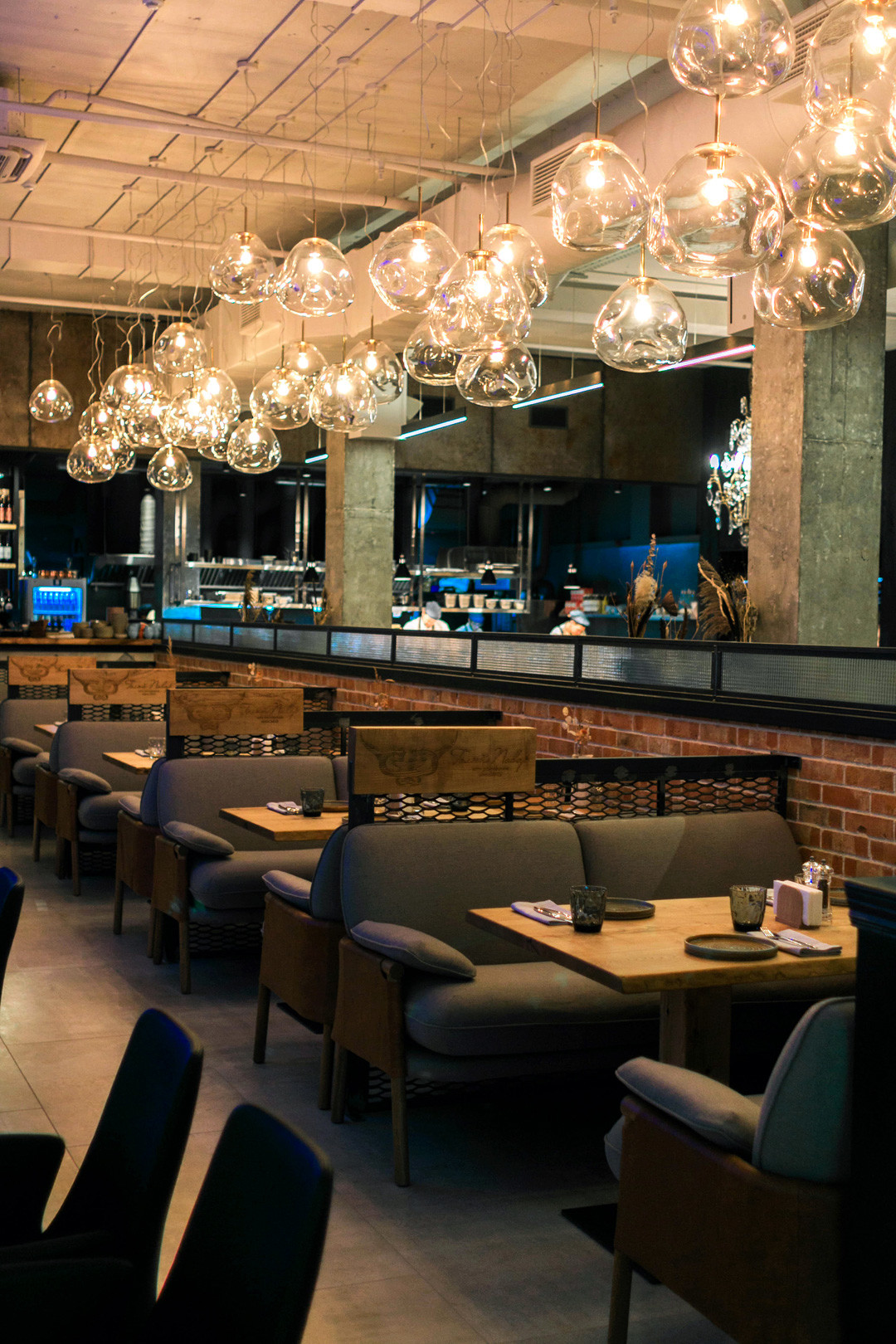Главное в заведение — это, конечно, открытая кухня, на которой приготовление каждого блюда превращается в кулинарное шоу. В зале же обстановка намного спокойнее: располагает к тихим семейным вечерам. Чтобы отдых детей и взрослых был одинаково комфортным и приятным, в «Голом поваре» сделали большую игровую зону как для малышей, так и для подростков.
