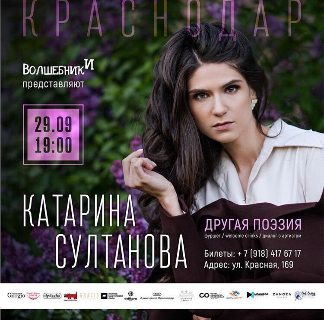 29 сентября впервые в Краснодаре, в рамках проекта «Другая Поэзии», яркая и глубокая, острая и провокационная в современной поэзии КАТАРИНА СУЛТАНОВА подарит незабываемый вечер!