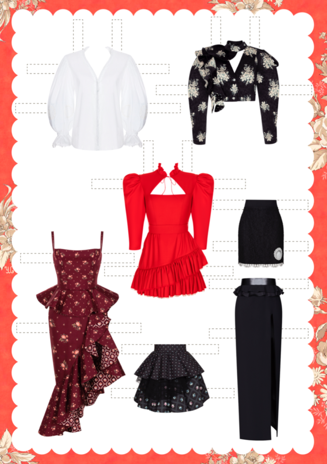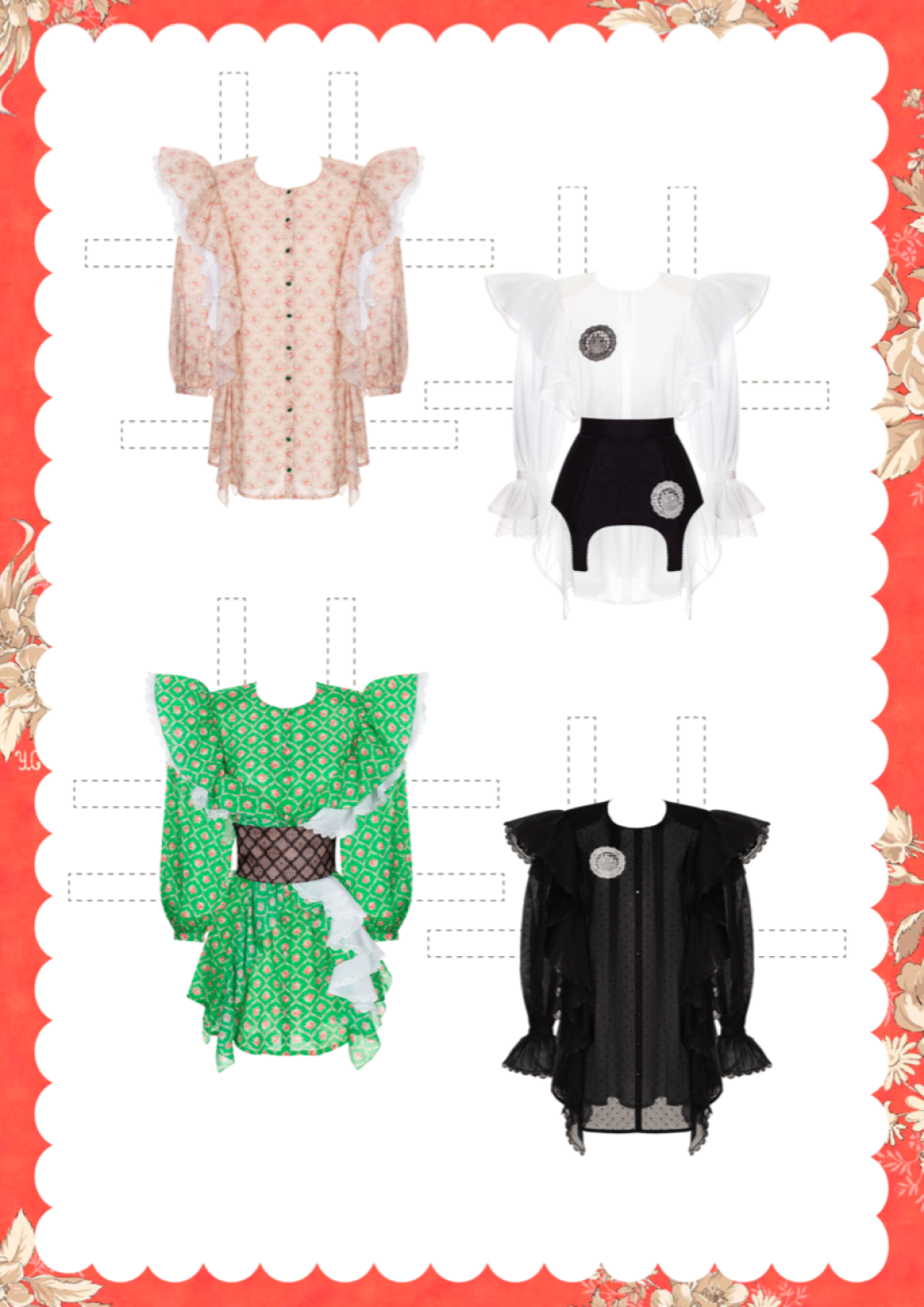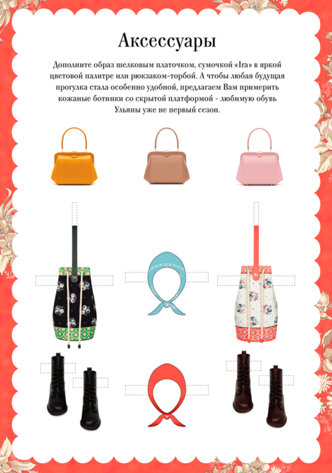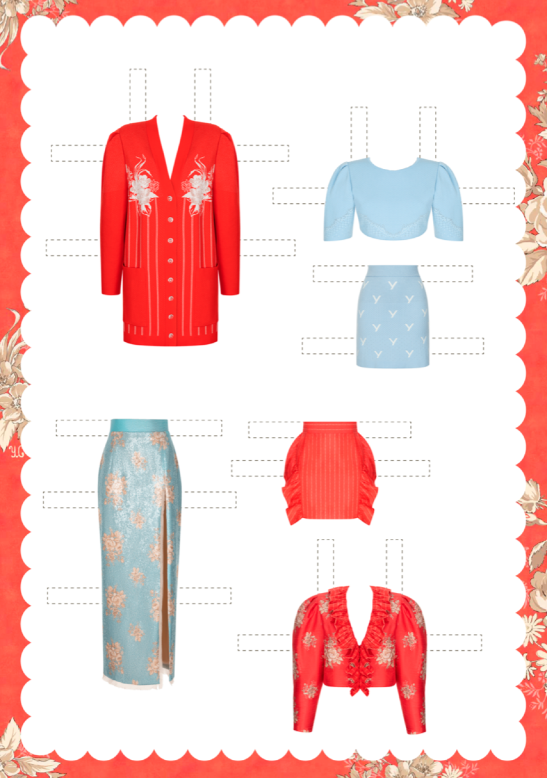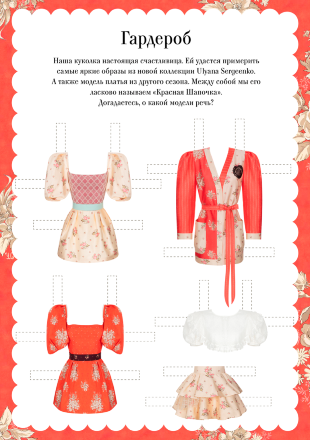Ulyana Sergeenko сделали игру – это бумажная кукла с нарядами–копиями вещей из коллекций бренда. Платья, юбки, жакеты, сумки, платки и даже ботинки со скрытой платформы, которые дизайнер повторяет из сезона в сезон.