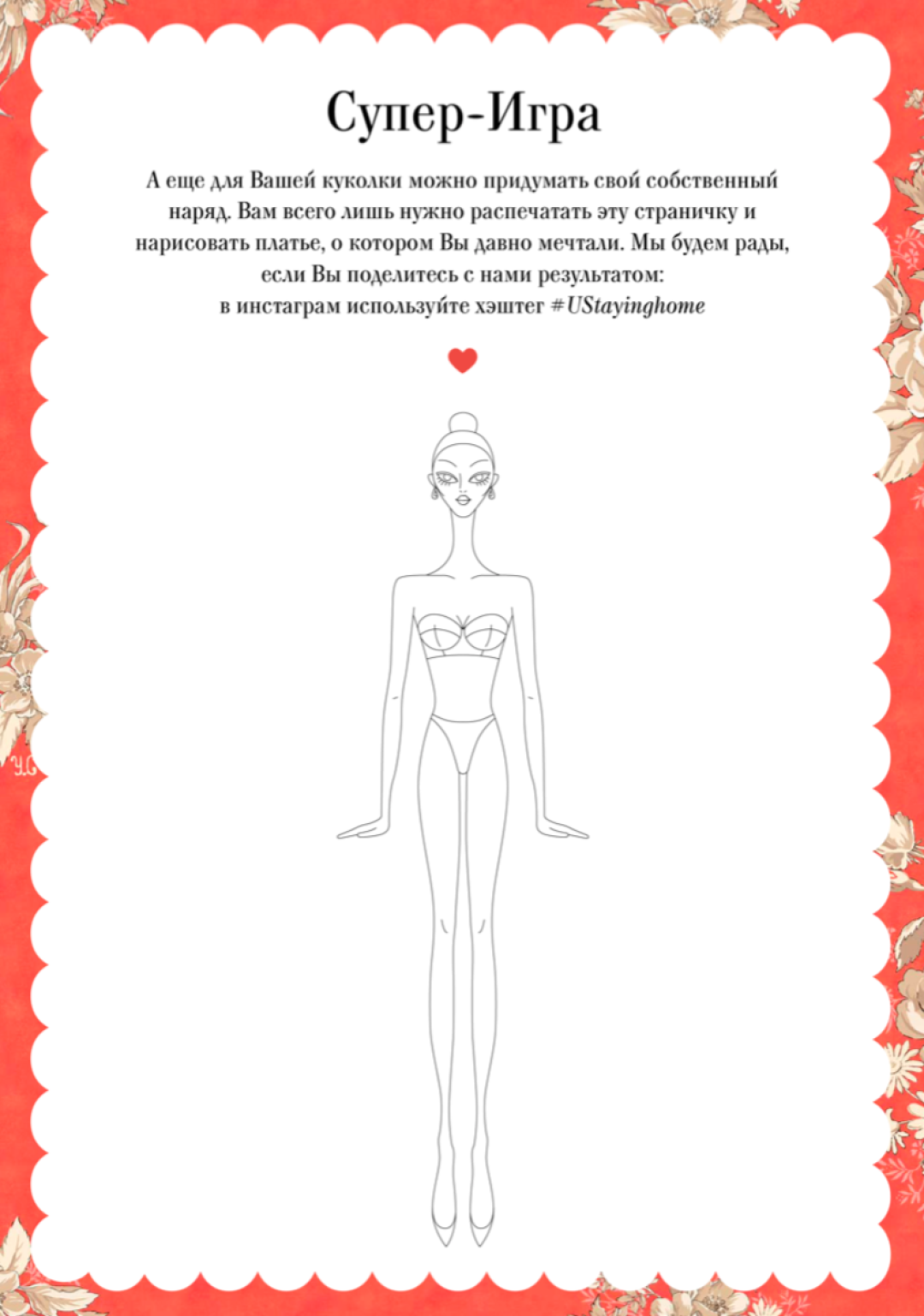 Суть проста: нужно распечатать игру, вырезать куклу и одежду по контуру и устроить показ мод прямо дома. Кроме того, команда бренда придумать свой наряд для «бумажной» модели и выложить его в Instagram с хэштегом #UStainghome. Шаблоны можно скачать здесь. Напомним, ранее Ulyana Sergeenko создали плейлист из треков, звучавших на кутюрных показах, а также представили новую коллекцию в Париже – на подиум вышли Коко Роша и Дита фон Тиз.