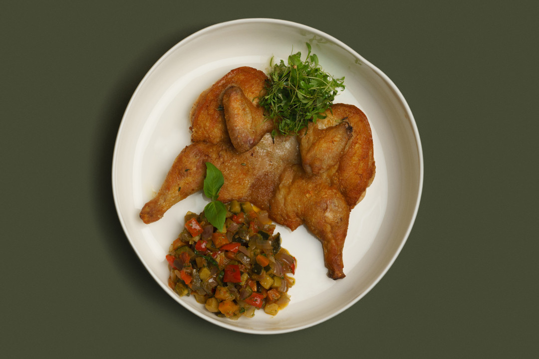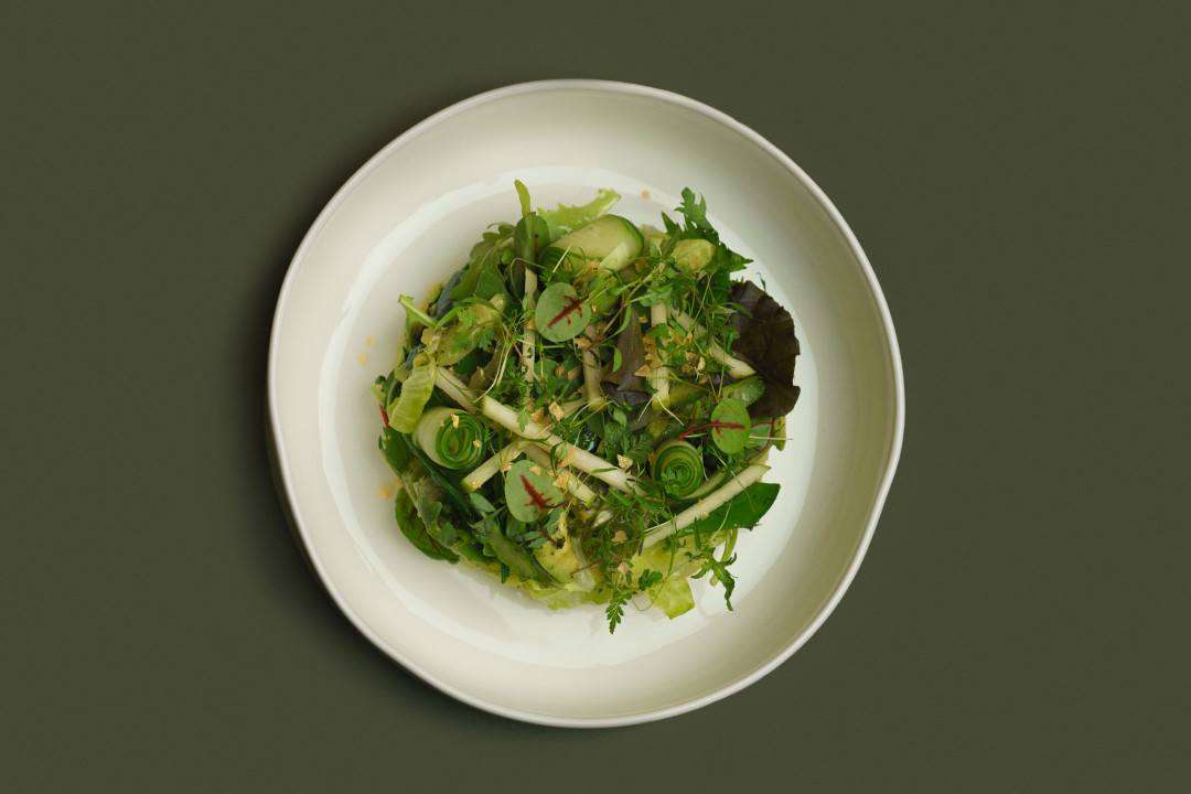 Умную — потому что свободно, едва не легкомысленно обращается со всеми кухнями мира: поке с тунцом выглядит как аленький цветочек, открытый пирог с лососем не похож на пирог; сосиску переформулировали на морской лад и подают со шматом хрустящей цветной капусты; гаспачо делают из свеклы и кладут соус дзадзики, минестроне варят с гречкой. Экологичную — потому что работают без пресловутой троицы «сахар-глютен-лактоза», и добрая половина позиций меню подходит для веганов и вегетарианцев. Но еду трудно заподозрить в пресности и диетичности. Короче, сидишь и гадаешь, чего в хумусе с морковью и апельсином  больше — пользы или эстетики? Тем, кто без животных белков не может, — кролик с цукини с желтым карри или утка с топинамбуром.