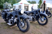 Выставка мотоциклов представляла собой любопытное зрелище и больше походила на военный полигон - солдатская кухня, грязь, костры и суровые мужчины в хаки и пилотках. Можно было увидеть редкие коллекционные экземпляры мотоциклов 30-х годов.