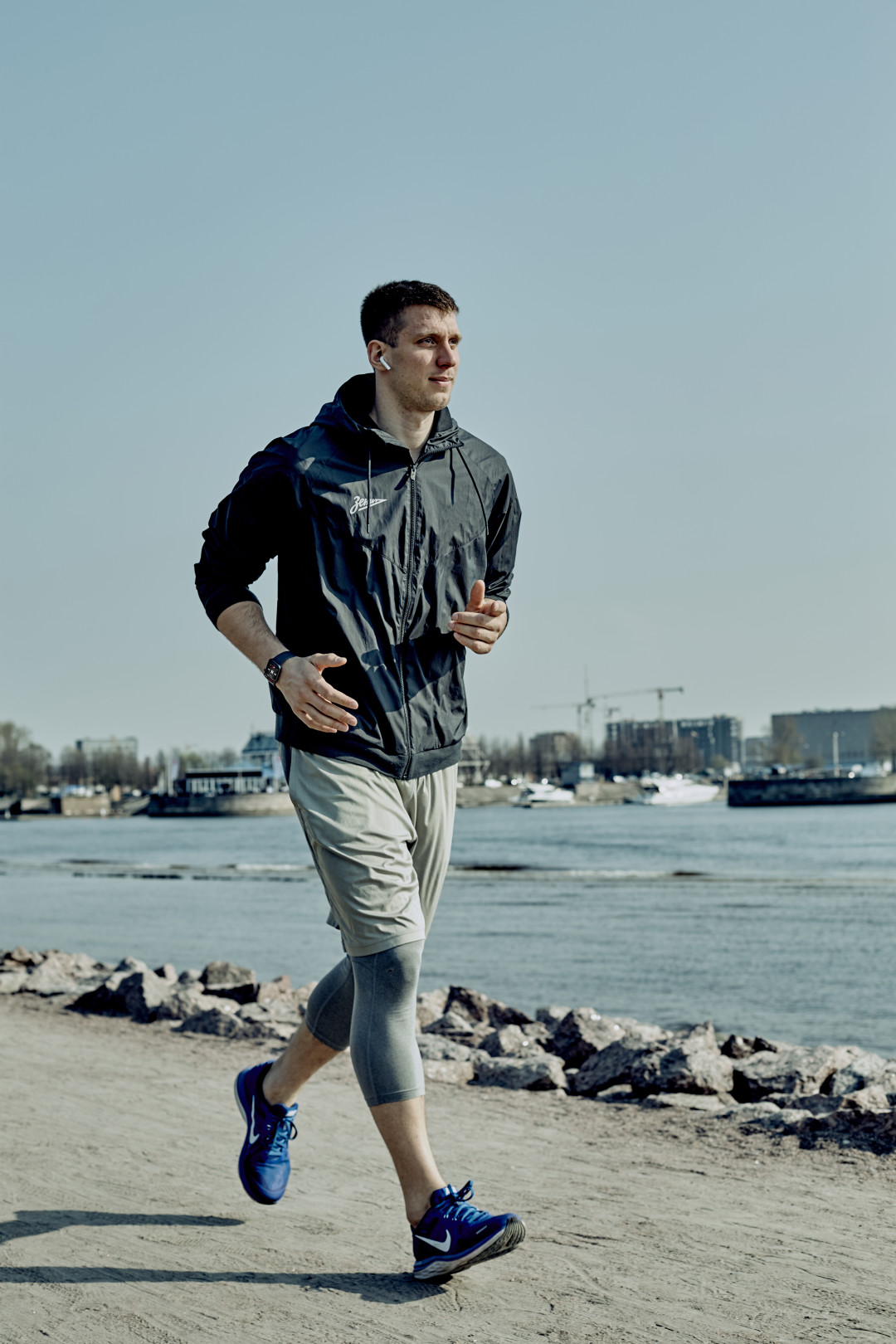 Я не думал, что Apple Watch — это про спорт, но они действительно полезны и для пробежек, и для работы в тренажерном зале. И оказались куда функциональнее фитнес-трекера, который я использовал до этого. Телефон и остальные гаджеты можно со спокойной душой оставлять в раздевалке: секундомер, пульсометр, а еще плеер сопряжены в одном устройстве. Я не могу надевать часы на баскетбольные тренировки или соревнования — по правилам игры нам запрещены любые аксессуары, даже кольца. Но использую их во время занятий на тренажерах, в бассейне и во время пробежки. Загружаешь на Apple Watch свой плейлист, запускаешь тренировку «Бег» — часы замеряют твои показатели, а ты погружаешься в себя и сосредотачиваешься на ощущениях.