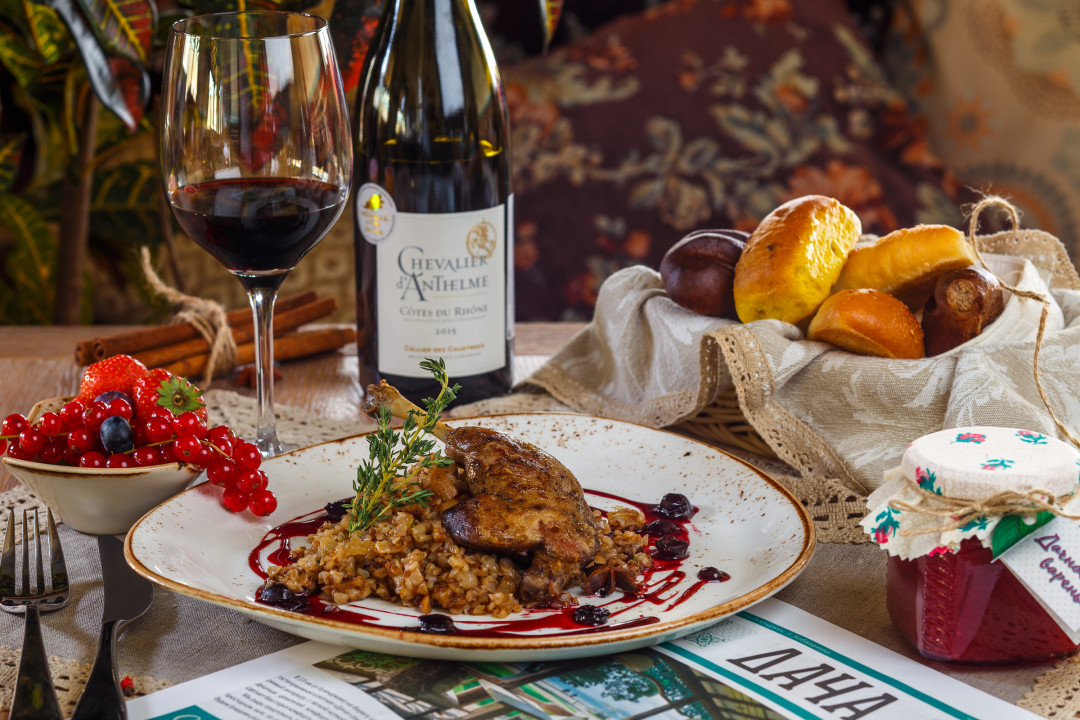 В меню современные интерпретации классических русских рецептов, а блюда из собственной коптильни, домашние морсы, компоты и варенье придадут вашему застолью особенное настроение.