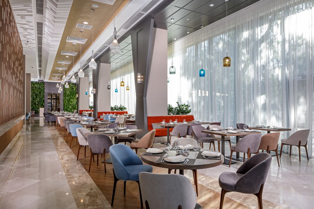 Панорамный ресторан, расположенный на восьмом этаже отеля «Кемпински Гранд Отель Геленджик», располагает к счастливому созерцанию геленджикской бухты и гастрономическим удовольствиям. В меню мир Средиземноморья гармонично дополнен традиционными русскими блюдами в современной интерпретации.