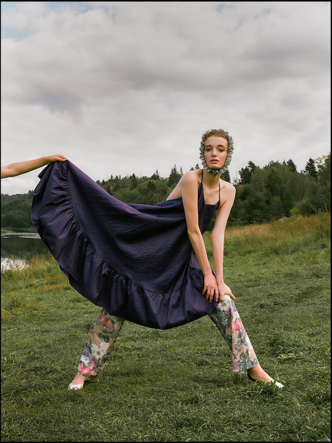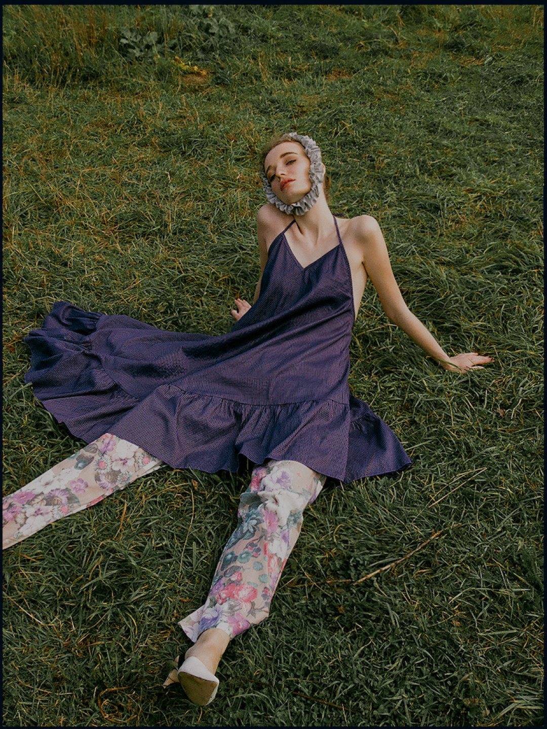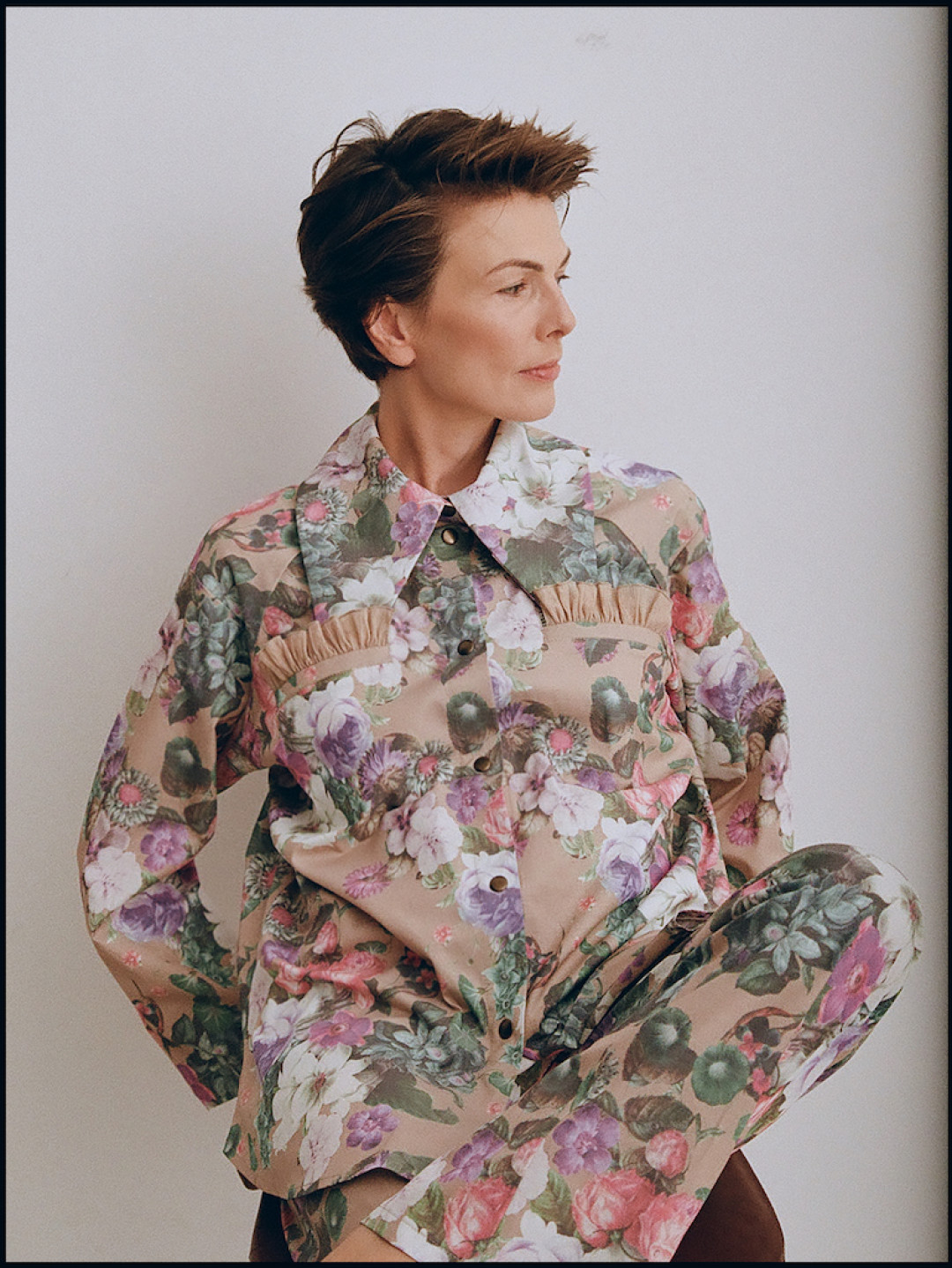 Дизайнер петербургского бренда Muus Лена Максимова, в прошлом году перебравшаяся в Москву, выпустила первый дроп осенней коллекции. В ней — брюки-дудочки с цветочным принтом, платья с многочисленными драпировками и куртки-рубашки с объемным воротником. Последний имеет потайной кармашек, в котором Лена Максимова спрятала аромасаше. «Сместь полыни, лаванды и шалфея образует не только приятный, но и полезный аромат для защиты в промозглые дни», — объясняет свою задумку дизайнер.