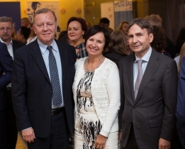 Мария Захарова, Артемий Троицкий и Анатолий Белкин на открытии выставки редких платков Hermès в KGallery