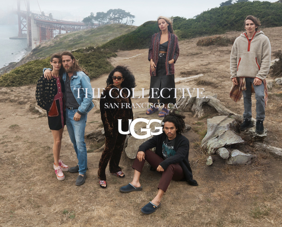 Герои, объединенные в «UGG Collective» (так называется международный проект бренда), позируют в локациях Сан-Франциско. На фоне величественных гор, диких лесов и тихих туманных пляжей домашние тапочки, меховые сандалии и кроссовки на высокой платформе смотрятся еще более аутентично!