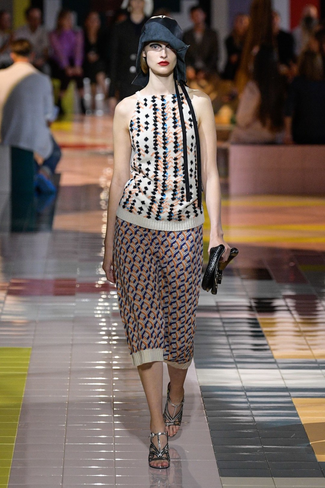 В остальном креативный директор Миучча Прада цитировала в коллекции саму же себя: просвечивающиеся поло, однотонные платья и костюмы приглушенных оттенков будто бы списаны с показов дизайнера середины 1990-х годов. Стейтмент-обрамлением служили сережки-ракушки, открытые сандалии, платья с изображением тропических растений и сумки-корзины (в которые при желании можно насыпать лед!), напоминающие нам о том, что лето не так далеко, как кажется.