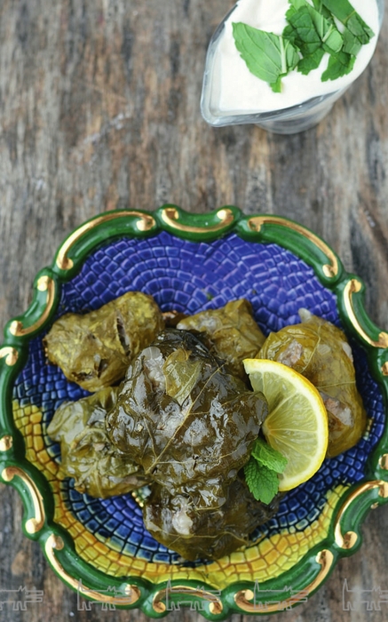• 1 банка (470 г) соленых виноградных листьев, рассол слейте