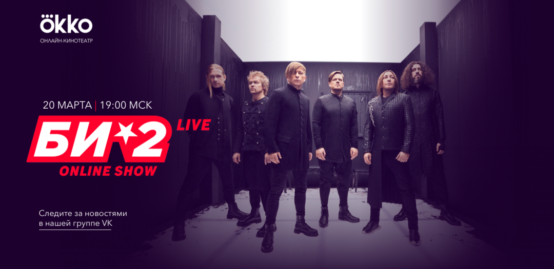 Группа «Би-2» сыграет 20 марта онлайн-концерт в поддержку своих поклонников на платформе онлайн-кинотеатра Okko. В связи с неблагоприятной эпидемиологической обстановкой музыканты были вынуждены перенести европейские концерты в Праге, Бамберге, Дюссельдорфе, Таллине и Риге и сибирские концерты в Иркутске, Красноярске, Томске, Новосибирске, Кемерове и Барнауле. Посмотреть концерт бесплатно можно здесь.
