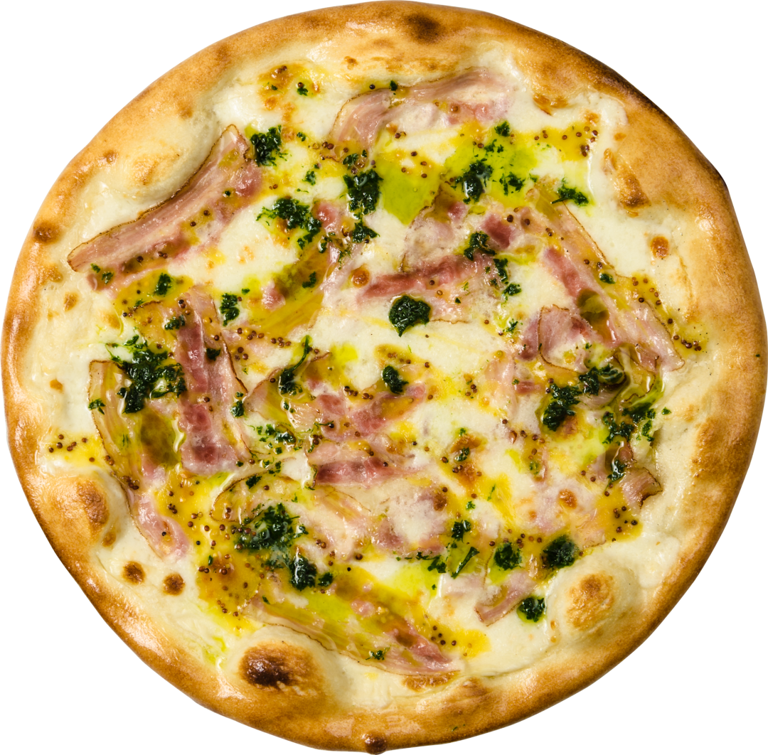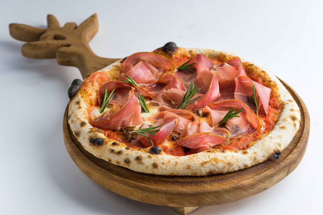 Томатный соус из Пелати Сан-Марцано, моцарелла собственного производства, рагу Болонезе и вареная ветчина – хрустящая неаполитанская пицца покорила уже не одно сердце.