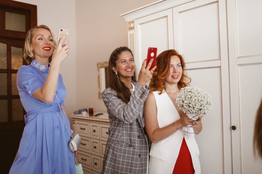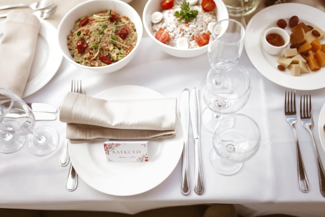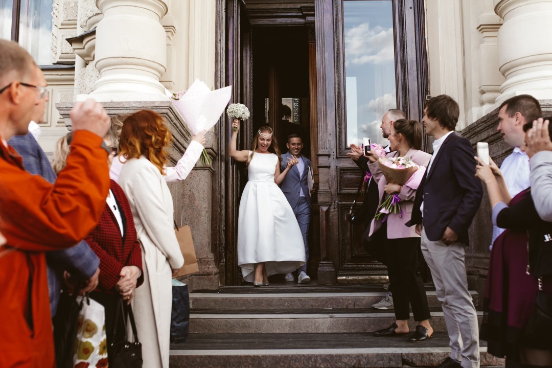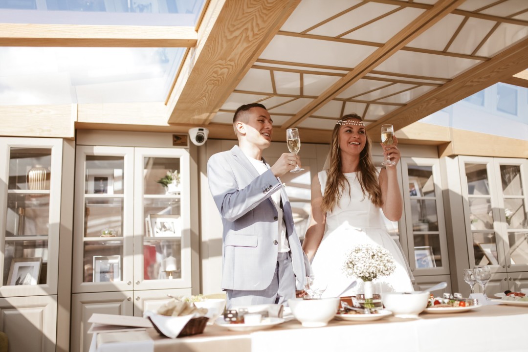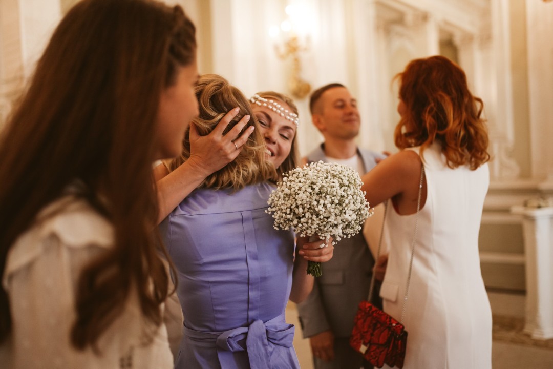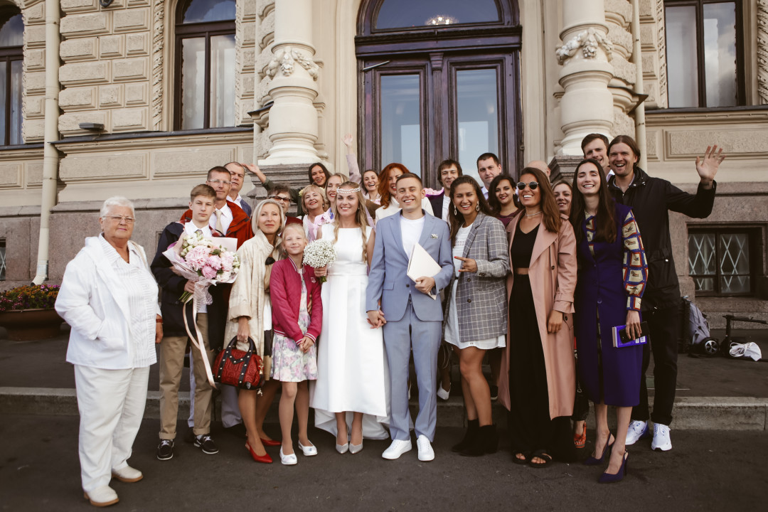 Изначально мы хотели просто расписаться, так как не любим шумные компании. Потом решили пригласить родителей. А потом подумали, что с одними лишь родителями свадьба будет выглядеть как обычный семейный ужин, а это все-таки особенный для нас день. Поэтому, помимо родственников, мы позвали самых близких друзей, с которыми общались в течение года и которые внесли вклад в формирование нашей семьи.