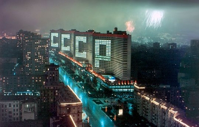 Проспект Калинина в Москве прорубили прямо посреди исторической застройки, как просеку в лесу, — по Генеральному плану реконструкции Москвы 1935 года. Эффектнее всего улица, сегодня носящая название Новый Арбат, выглядела вечером в праздничные дни, когда окна домов-книжек высвечивали четыре огромные буквы или цифры на выбор: СССР, КПСС, 1 или 9 Мая. Вопреки легенде, жильцы остальных квартир в это время не сидели в темноте: в домах располагались госучреждения, а включение света программировалось из аппаратной.