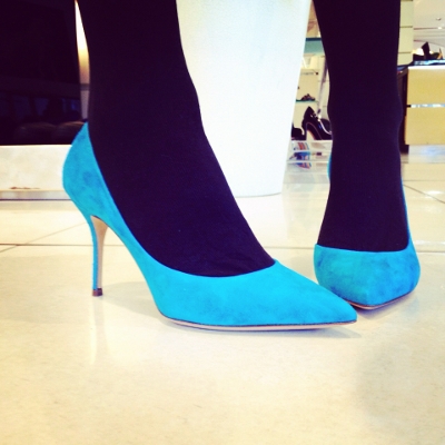 Замшевые лодочки бирюзового цвета из новой коллекции Casadei красивы и удобны одновременно. Их можно носить каждый день начиная с середины апреля.