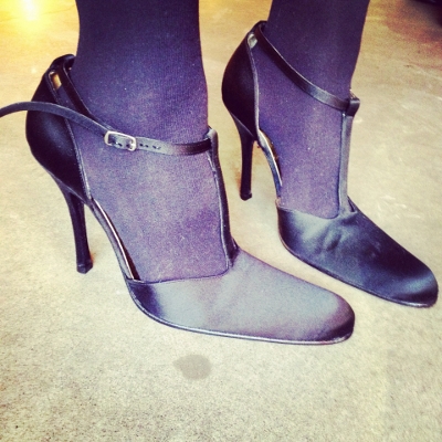 В бутике Freelance обнаружены винтажные туфли Jean Paul Gautier для Freelance из черного атласа, они оснащены ремешком-перепонкой, благодаря которому вы их никогда не потеряете.