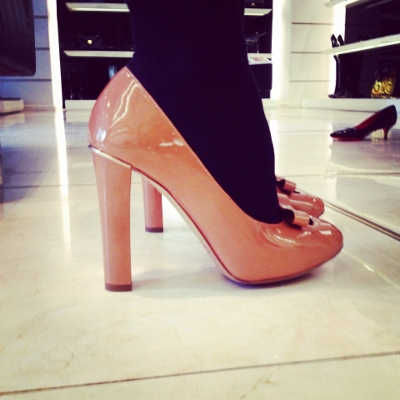 Новая коллекция Chloé уже поступила в продажу. Лаковые туфли светло-кораллового цвета, с бантиком на носу — очень удобные, несмотря на высокий каблук.