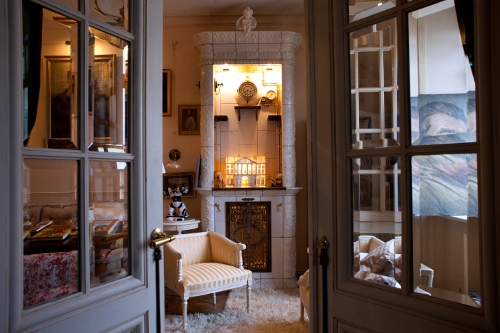 Страсть к антиквариату у хозяина с детства. Еще учась в школе в Курске, он с друзьями находил на чердаках заброшенных домов старинные вещи и сдавал их в музеи: продавать было нельзя. В четырнадцать лет Сергей уехал в Ленинград и поступил в реставрационное училище — так увлечение стало профессией. Постепенно от реставрации перешел к созданию частных коллекций, а чтобы собираемые вещи органично сосуществовали до того, как найдут покупателя, выделил для них несколько квартир. Одна из них, на Петроградской стороне, посвящена агитационному декоративно-прикладному искусству советских времен. Дом на Кронверкской улице, в котором она расположена, тоже с историей — здесь жили председатель Ленсовета Григорий Зиновьев со всеми своими домочадцами, композитор Дмитрий Шостакович, актеры Николай Черкасов и Борис Бабочкин, а в соседнем здании находится Музей-квартира Кирова. Кажется, что многое тут осталось нетронутым с советских времен, однако это обманчивое впечатление. Интерьер был оформлен всего несколько лет назад, тогда появились винтажные выключатели, и проводка с изоляторами, и обои с плиткой, — от прежней квартиры сохранился только дореволюционный паркет.