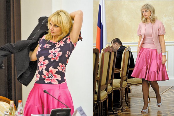 Мини-юбка на встрече с президентом как бы говорит за Татьяну Голикову: женщина в кабинете только одна, и решает здесь она. Такие же чудеса творит «говорящее» декольте в разговоре с Андреем Фурсенко.