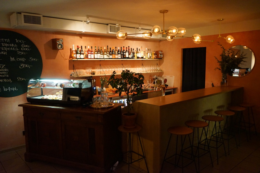 Несмотря на легкомысленное название — «бабочки в животе», — к устройству своего винного бара брат и сестра Дмитрий и Анастасия Решетниковы подошли очень серьёзно. Редкие бутылки не только из Старого Света, но и из необычных регионов вроде чешской Моравии; если соте из креветок, то с соусом «Шампань», если крем-брюле, то из фуа-гра