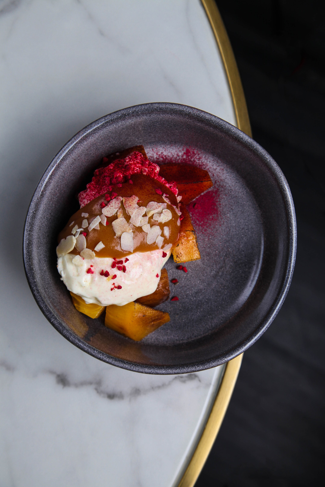Новый шеф-повар Сыроварни Михаил Кучма (финалист премии «Что Где Есть в Петербурге» в номинации «Прорыв года среди молодых профессионалов») внес правки в меню ресторана и добавил сезонную хурму с рикоттой, лепестками миндаля и соленой карамелью. Рикотта, конечно, местная — взбивается с кокосовой стружкой.