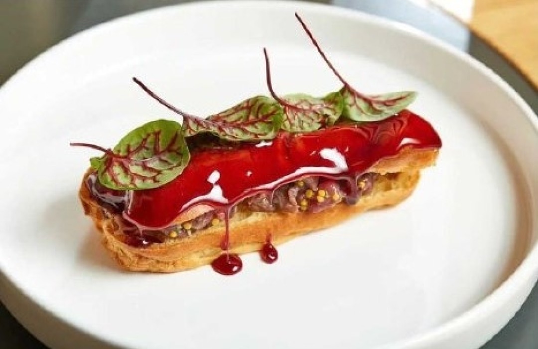 Александр Плеханов еще один финалист нашей премии в номинации «Прорыв года среди молодых профессионалов» полностью обновил меню в баре «Цветочки». Любопытных позиций там предостаточно, но мы обращаем свое (и ваше) внимание на тартар из оленины с пастернаком и горчицей. Заварная булочка с тартаром внутри, нежным кремом из пастернака и гранатовым соусом, щедро политым сверху.