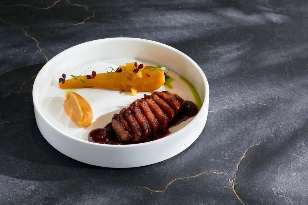 В первом проекте Александра Раппопорта в Петербурге много мяса. Сменяемость продуктов здесь подчеркнули уткой с пастернаком и айвой. Слегка маринованное филе утиной грудки обжаривается до легкой корочки, а подается с муссом из пастернака, глазированного в грушевом пюре, пряной айвой и джемом из крыжовника.