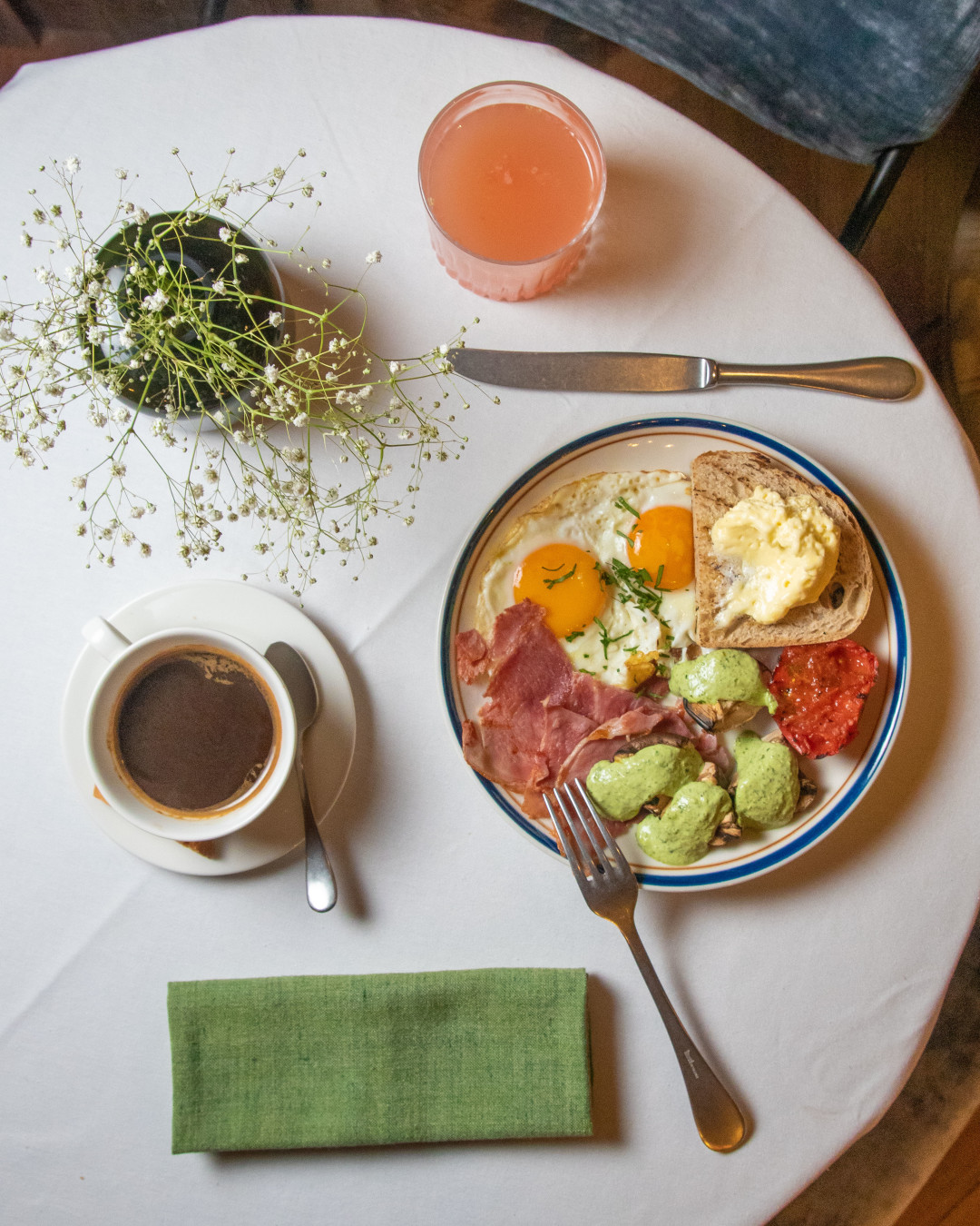На Фонтанку за завтраком теперь не только в «Мечтатели» — в Salone приходим к 9:00 по будням и к 11:00 по выходным за тирольскими блинами, чиз-боллс со сметаной, яйцом кокот с трюфелем или крабом и большим завтраком с жареными яйцами с ветчиной, томатами и портобелло.