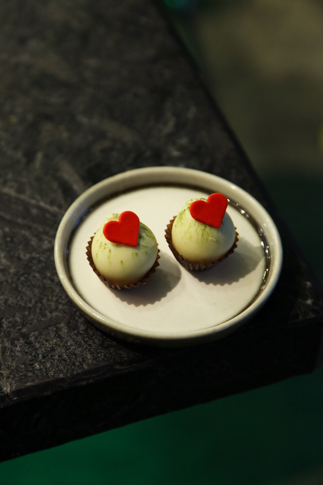 14 февраля в азиатском ресторане каждая влюбленная пара получит десерт в качестве комплимента: муссовая конфета юдзу-матча, одетая в белый шоколад от шеф-кондитера Александры Богдановой.