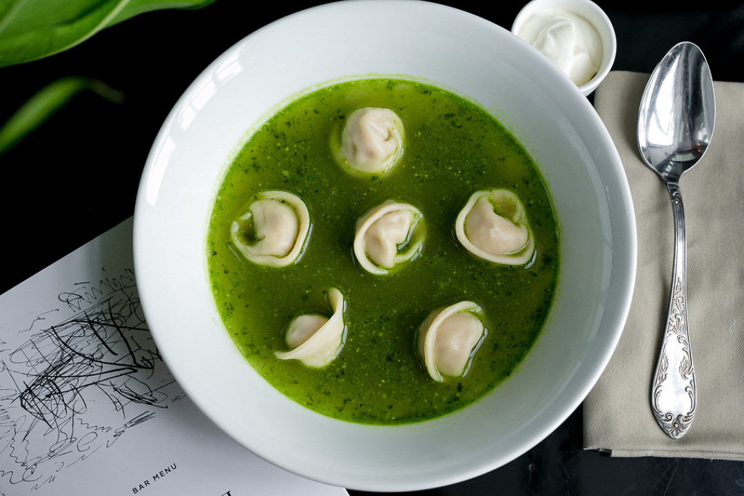 В Kyznya House все запредельно логично — сначала бранч с игристым, потом танцевальная вечеринка, а с утра и здесь же воскрешающий куриный бульон с щавелевым песто и домашними пельменями. После этого блюда точно появятся силы даже на то, чтобы рассекать лед на катке по соседству.